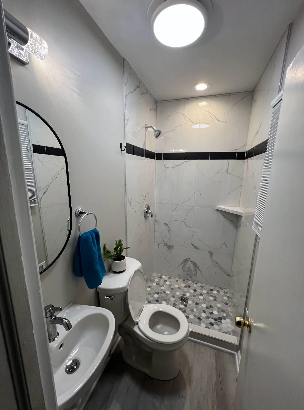 RESIDENTIAL - Bathroom: Tile, shower, toilet, flooring and sink.